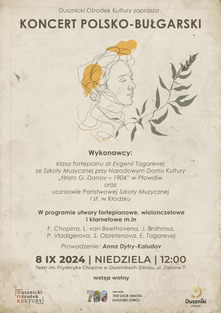 Koncert polsko -bułgarski, 08.09.2024, 12.00. Wystąpią uczniowie szkół muzycznych z Kłodzka i Płowdiw. Wstęp wolny. Zapraszamy.