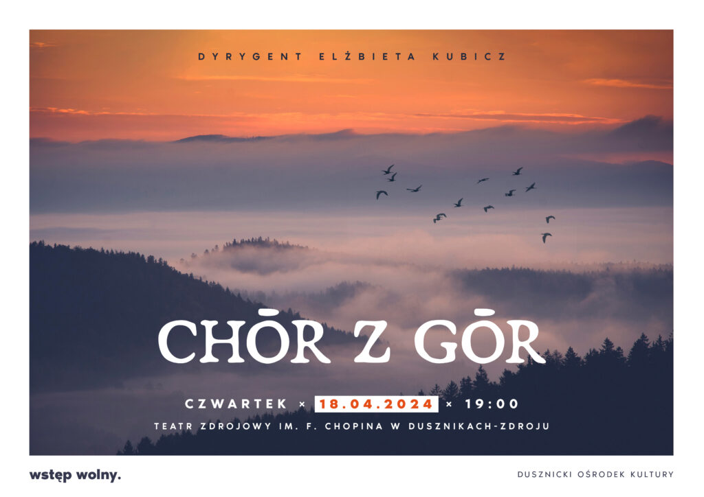 Zapraszamy na koncert Kameralnego Chóru „Chór z Gór”. Wstęp wolny! Będzie poważnie, rozrywkowo, a także i na ludowo!