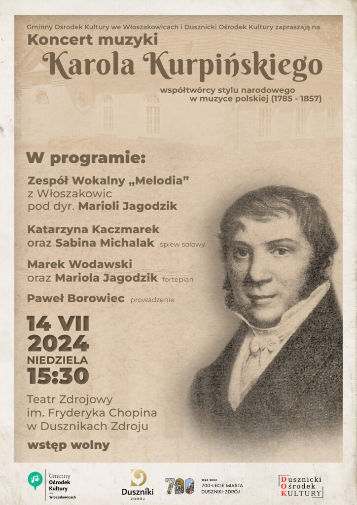 Koncert muzyki Karola Kurpińskiego w Teatrze Zdrojowym im.F.Chopina 14 lipca 2024o godz.15:30