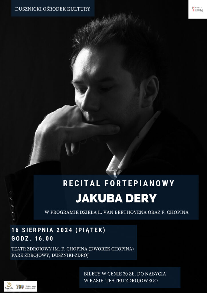 Wydarzenia Recital fortepianowy Jakuba Dery w Teatrze Zdrojowym im.F.Chopina w Dusznikach -Zdroju 16 sierpnia 2024 godz.16:00 2024-07-102024-07-31 DOK