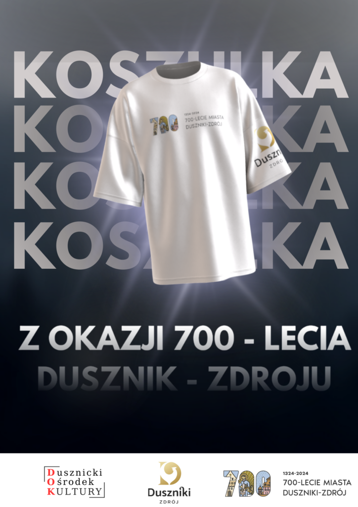 Z radością zapraszamy do zakupu wyjątkowych koszulek z okazji 700-lecia Dusznik-Zdroju! To doskonała okazja, aby uczcić tę piękną rocznicę i pokazać swoje przywiązanie do naszego miasta lub nabyć wyjątkową pamiątkę z pobytu w Dusznikach-Zdroju.